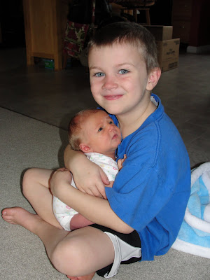 This was taken that evening when Ben brought the kids up to meet their new sister! They were so excited!
